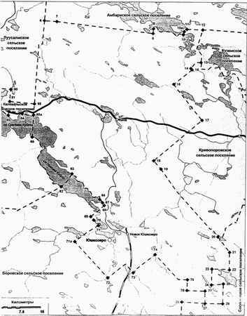 От т. 72 до т. 73 между кв. 14 - 21, 44 Боровского лесничества Юшкозерского лесхоза и кв. 274 - 280, 306, 332 Юшкозерского лесничества Юшкозерского лесхоза до восточного угла кв. 44.